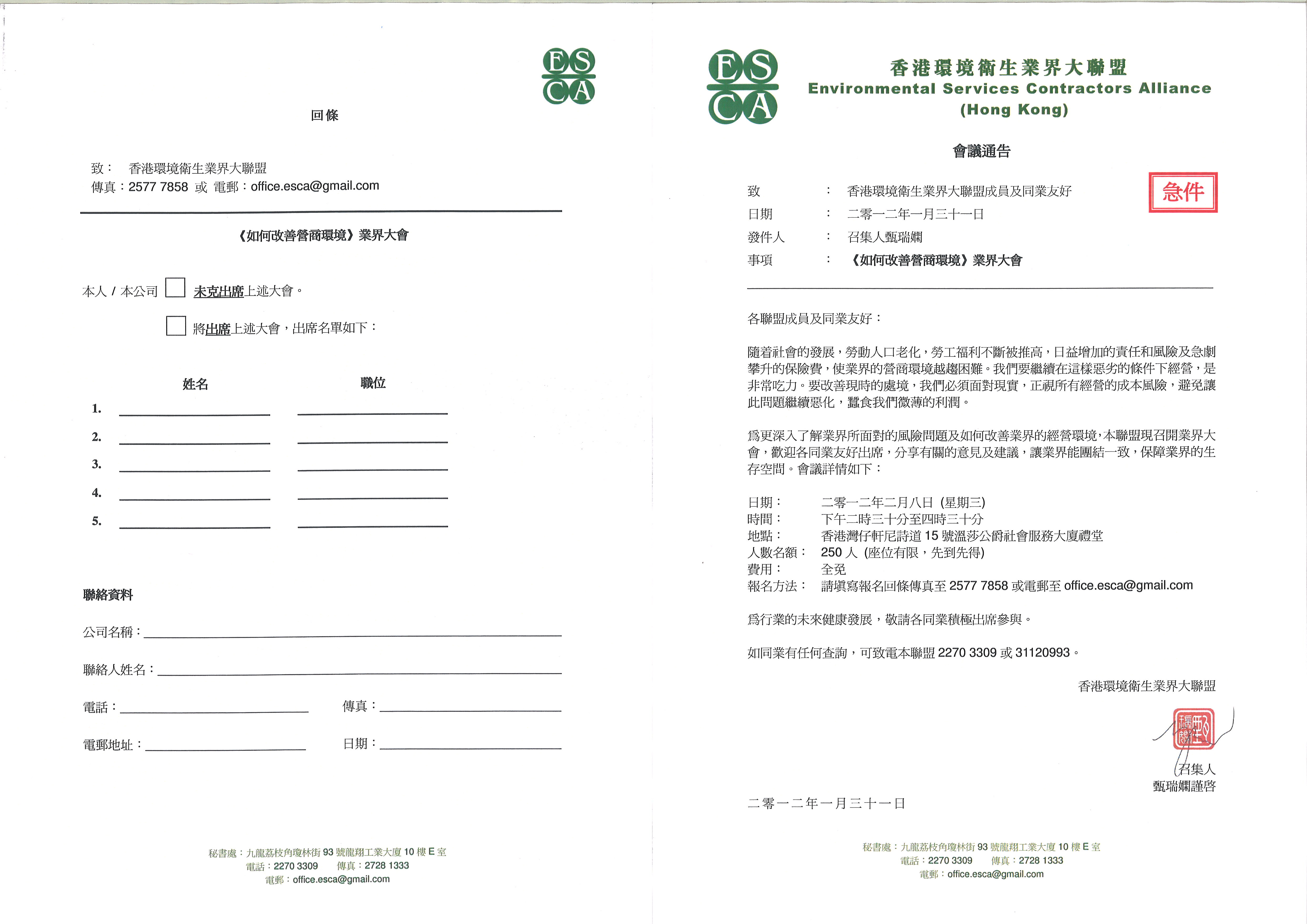 《如何改善營商環境》業界大會 - 2012年2月8日