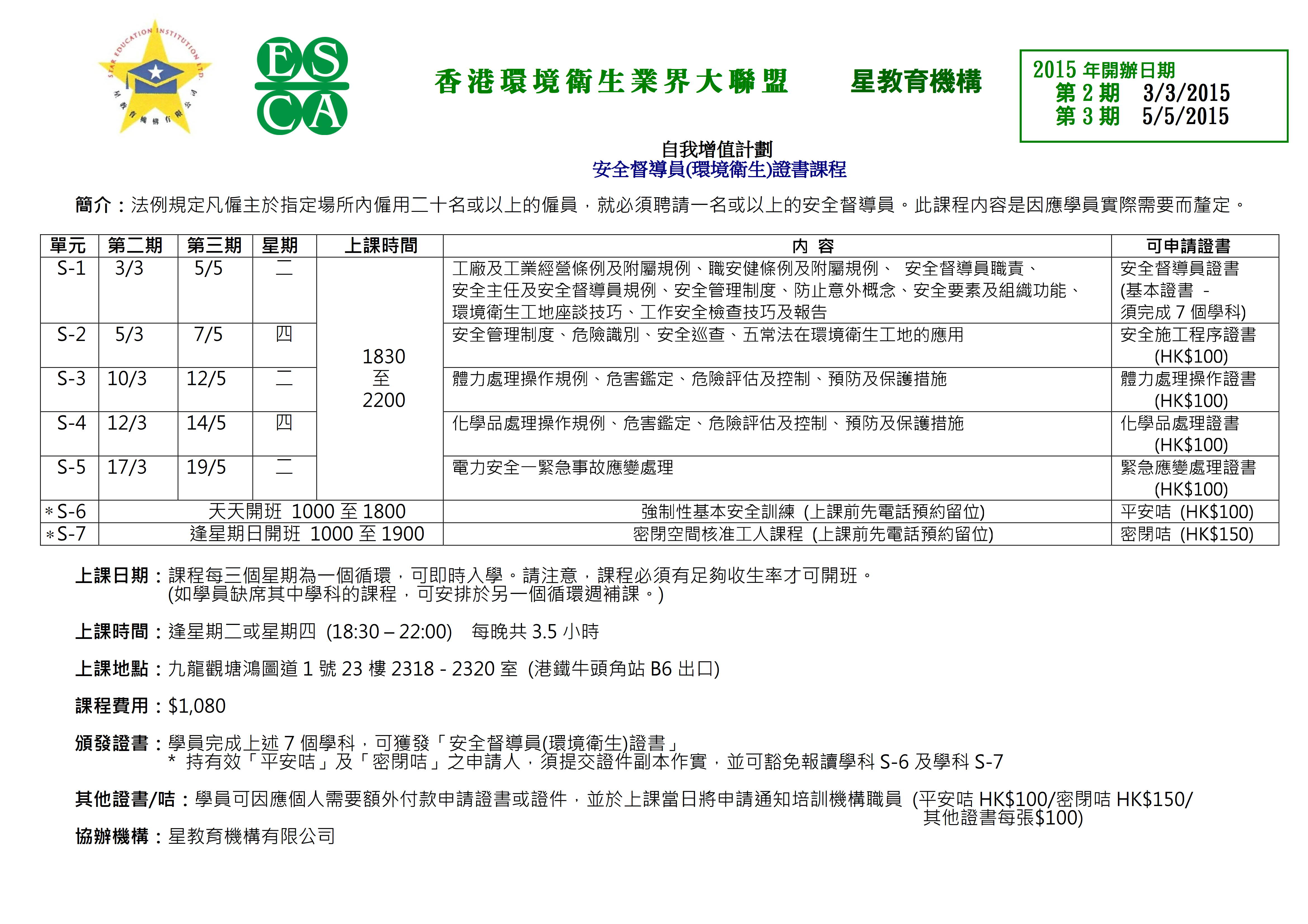 安全督導員(環境衛生)證書課程簡介(2015第2及3期課程)