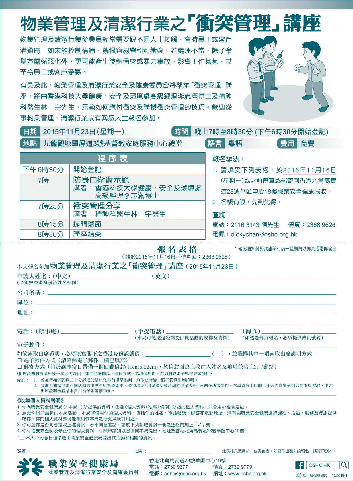 日期: 2015年11月23日(星期一) 時間: 下午7時至8時30分 (下午6時30分開始登記) 地點: 九龍觀塘翠屏道3號基督教家庭服務中心禮堂 費用: 全免