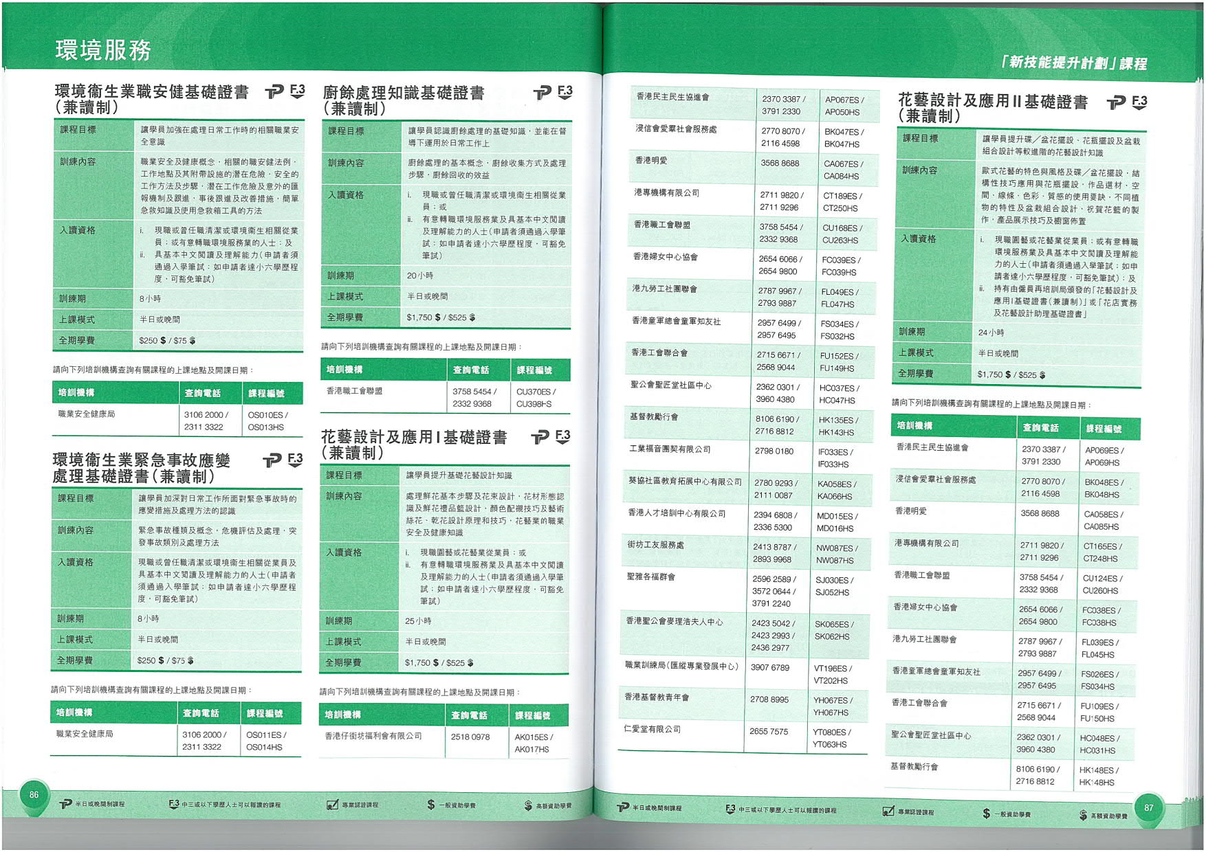 僱員再培訓局現正推出兩項為環境服務業而開設的「新技能提升計劃」 課程, 詳情請參看下圖內容。如欲報名,請直接與培訓機構聯絡。