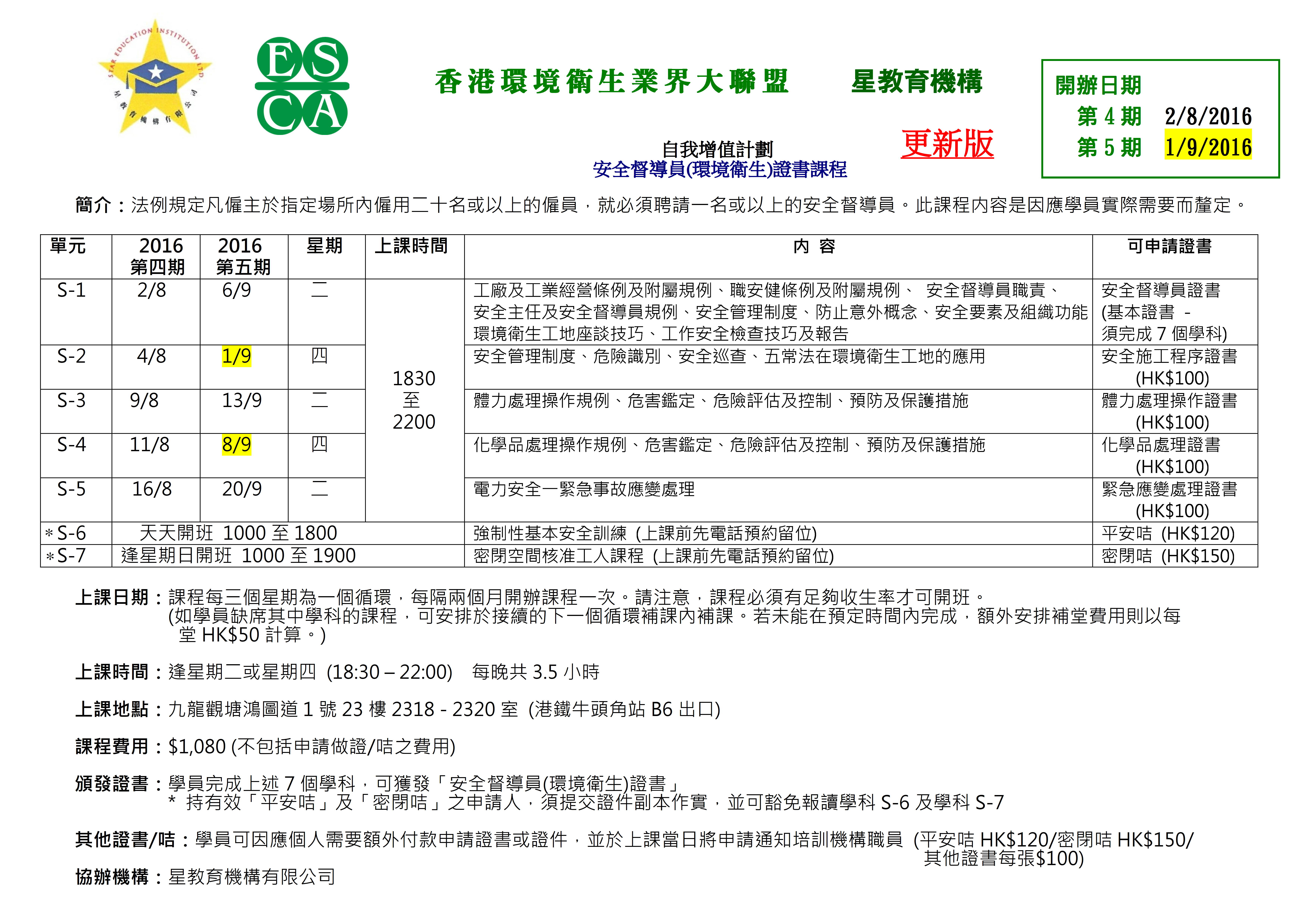 安全督導員(環境衛生)證書課程簡介(2016第4期及第5期課程)